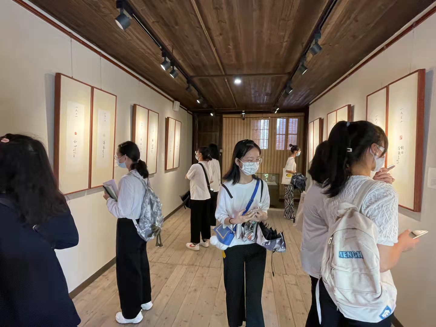 学生听展馆志愿者介绍篆刻艺术