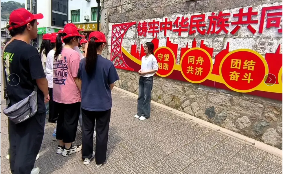 围绕“铸牢中华民族共同体意识,播撒民族团结进步石榴籽”这一主题,实践队员陈慧瑜现场宣讲,与大家一同重温赤溪畲族村三十年来民族工作中所取得的巨大成果,并吸引了诸多游客的目光。在“造福工程”和“五通五改”工程实施下,当地少数民族同胞幸福感、获得感、安全感日益增加,少数民族经济、社会、文化各项事业取得长足发展。这是“把铸牢中华民族共同体意识作为党的民族工作和民族地区各项工作的主线”的伟大实践成果。