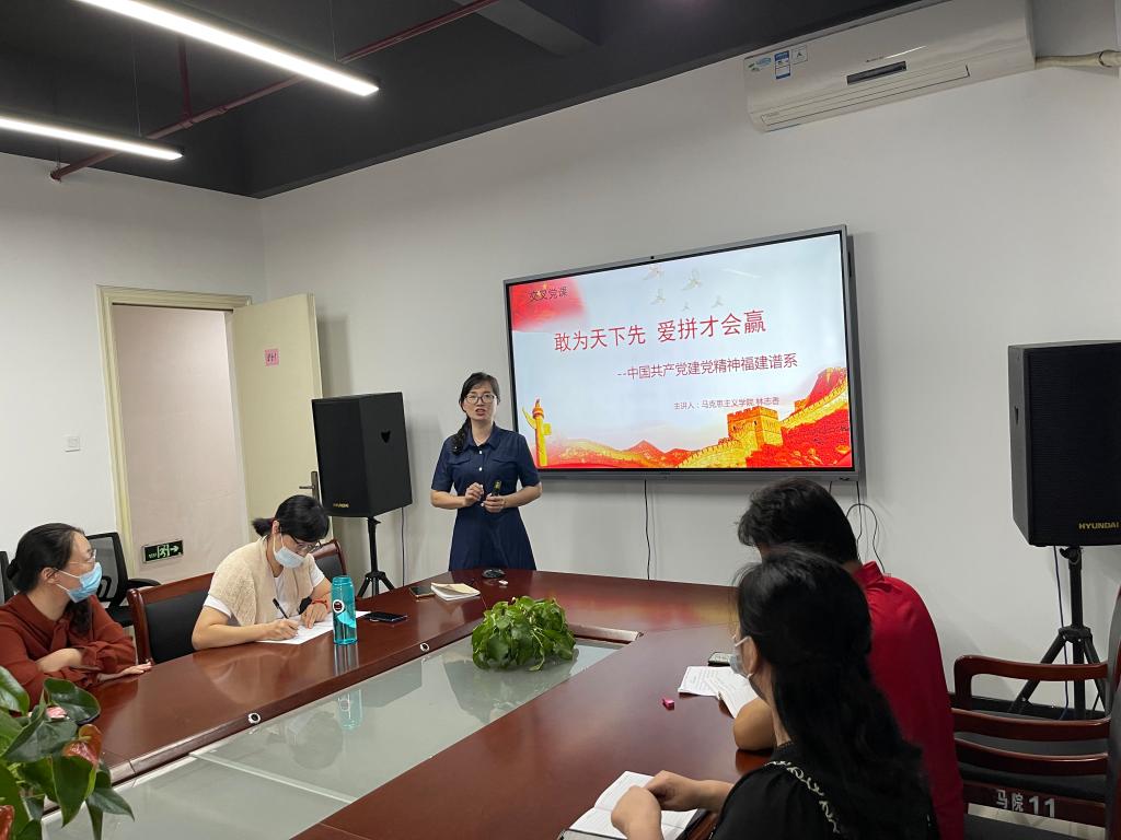 马克思主义学院直属党支部书记林志香以“敢为天下先 爱拼才会赢——中国共产党建党精神福建谱系”为主题,重点介绍了晋江精神,激励全体党员同志立足新时代,积极进行改革创新。