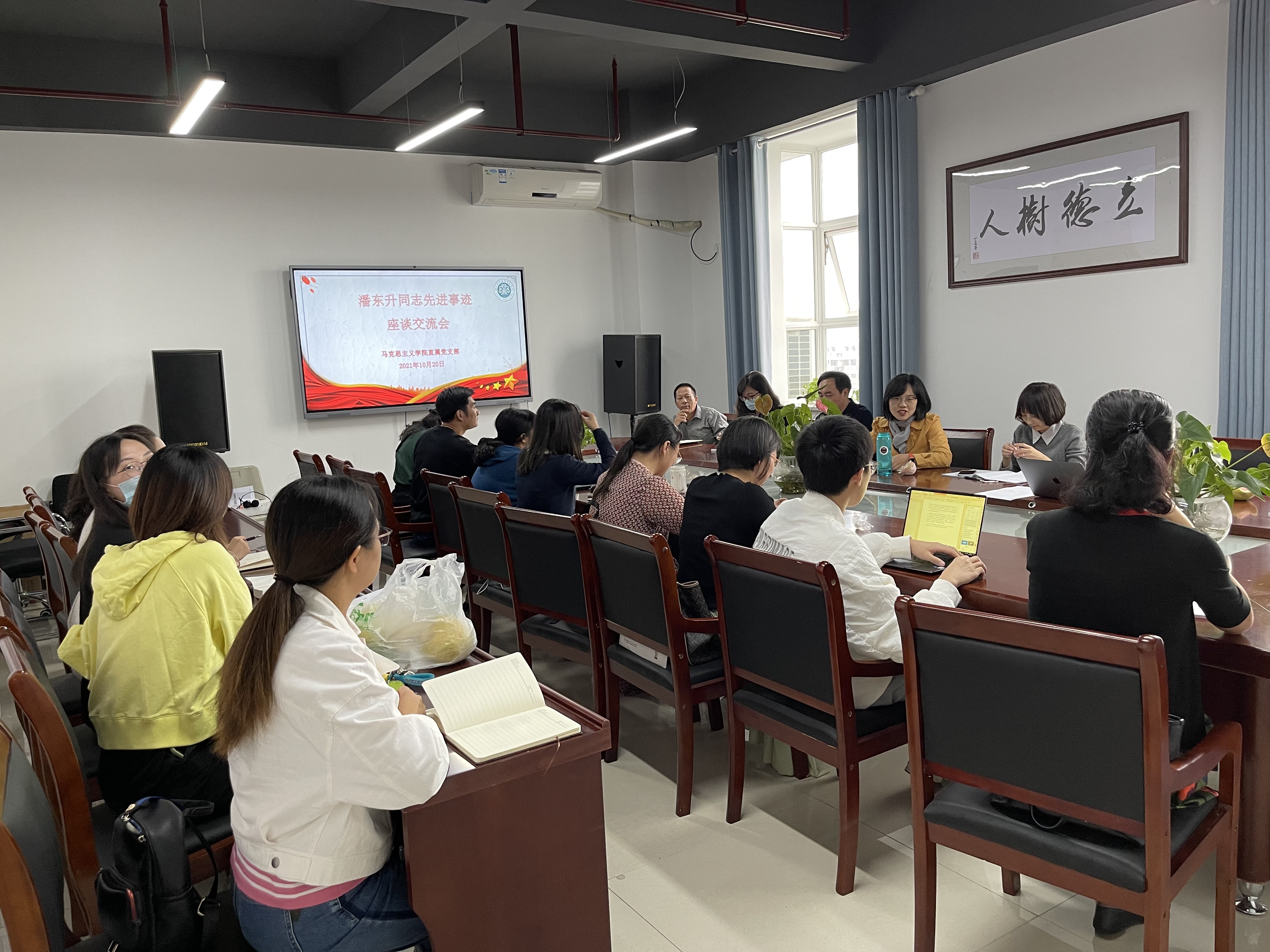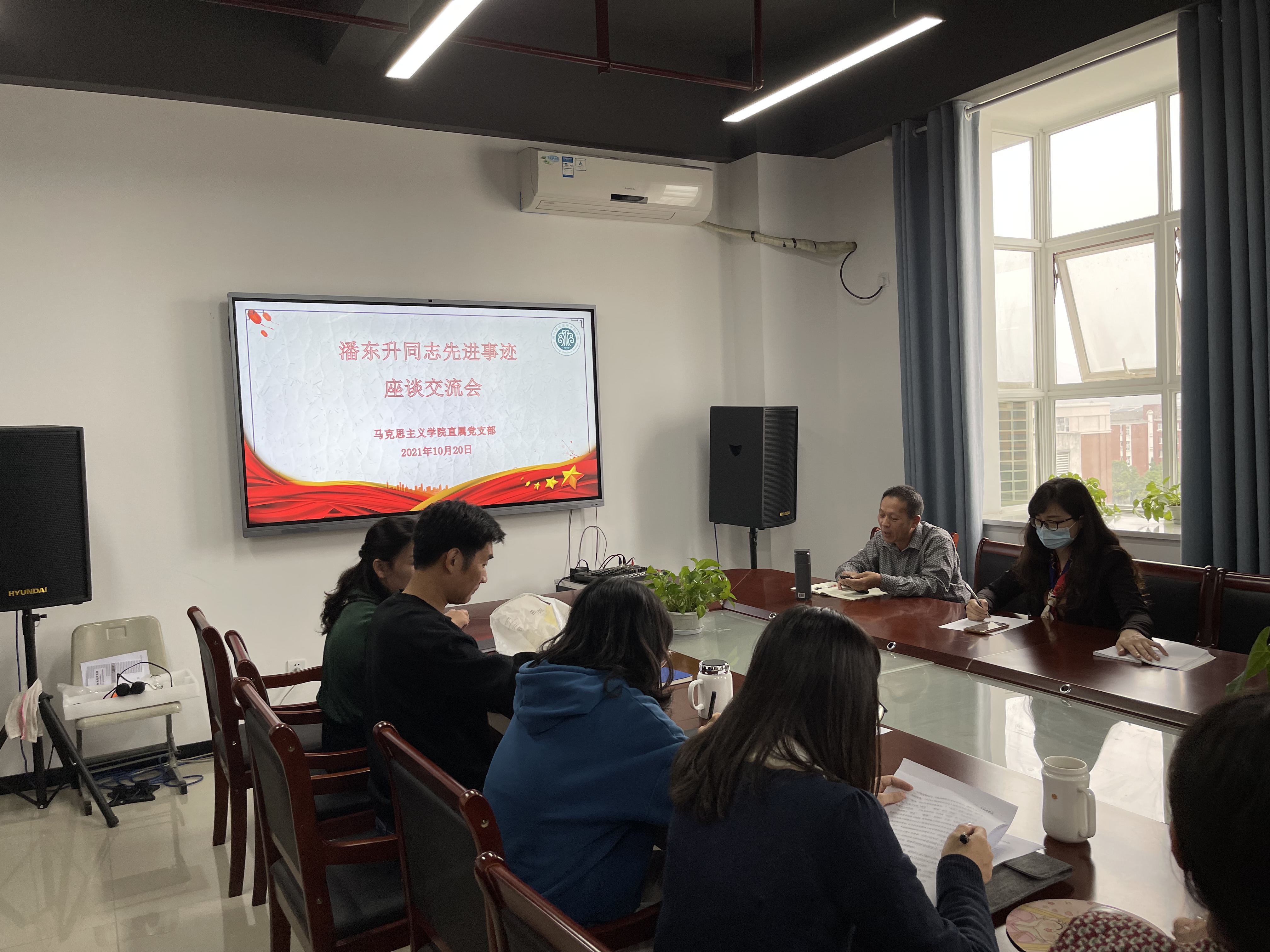 为推动党史学习教育走深走实,深入学习潘东升同志先进事迹,10月20日下午,马克思主义学院在旗山校区办公楼党建活动中心开展潘东升同志先进事迹座谈交流会,洪书院院长与马克思主义学院全体教师党员参加会议。