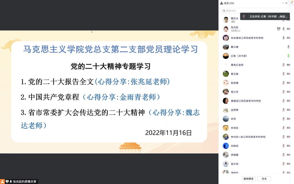 11月16日上午,我院党总支教师第二支部线上召开11月份理论学习会。会议由支部书记张兆延主持,支部全体党员参加。