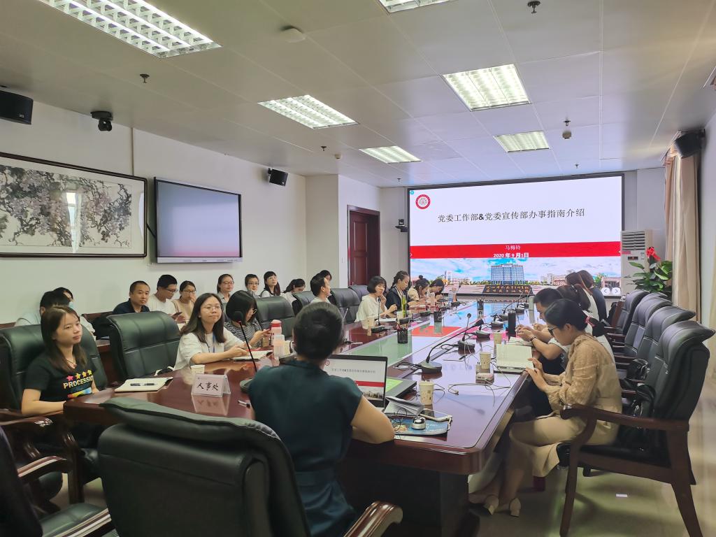 9月2日下午,为帮助新教师尽快适应校园工作、熟悉校园生活,学校特组织科研处、现代教育技术中心、党委工作部(宣传部)、后勤管理处等相关业务处室就教师工作、生活密切相关的办事指南及流程进行了相关培训。