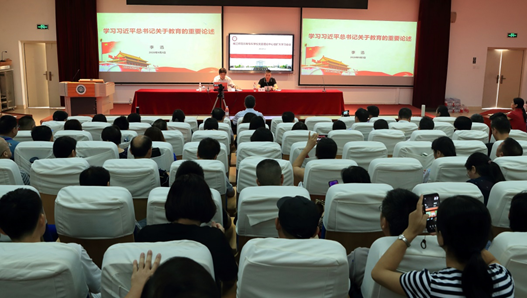 9月3日上午,为加强学校师德师风建设,培养新教师良好的教育信念,学校特邀请了福建省委教育工委委员、教育厅党组成员、副厅长李迅于旗山校区2018教室开展题为“学习习近平总书记关于教育的重要论述”的主题讲座。他围绕教育的根本问题、教育的根本任务、教育的基本工作,提出深刻理解、认真落实“九个坚持”,做有政治高度、历史厚度、哲学深度、教育温度、国际角度的教师,办好人民满意的教育。