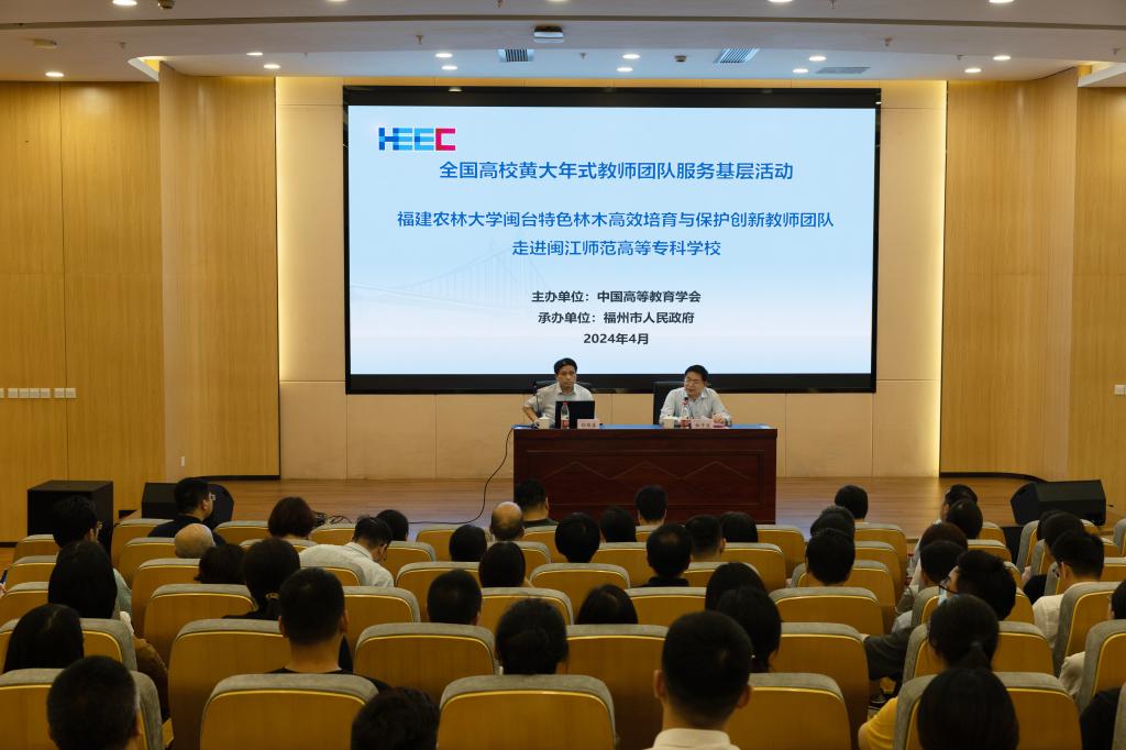 4月17日下午,全国高校黄大年式教师团队——福建农林大学闽台特色林木高效培育与保护创新教师团队走进大赢家体育app下载。团队负责人郑郁善教授在旗山校区图书馆一楼报告厅为大赢家体育app下载教师带来主题为“树木树人,厚德求新”的专题报告。报告会由校党委书记林子波主持。校长杨建义、副校长刘翔炜、中国高等教育学会王宁军老师、福建农林大学林学院副院长郭福涛教授、各部门负责人、各学院党政负责人、各教研室主任、“三项人才支持计划”培养对象、近三年新入职教师、第2期青年干部及青年教师班学员参加。