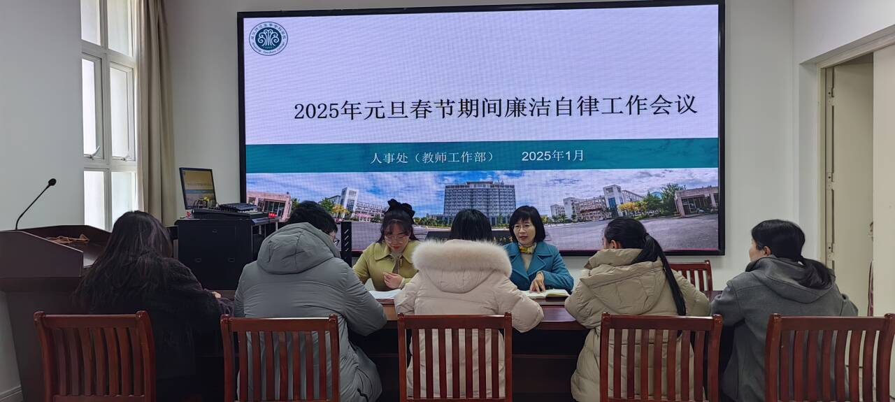 为进一步筑牢党员干部拒腐防变思想防线,确保节日及寒假期间校园政治生态风清气正、安全稳定。1月9日上午,人事处(教师工作部)党支部召开2025年春节前集体廉政谈话会,全体党员参加。会议由党支部书记吴春艳主持。