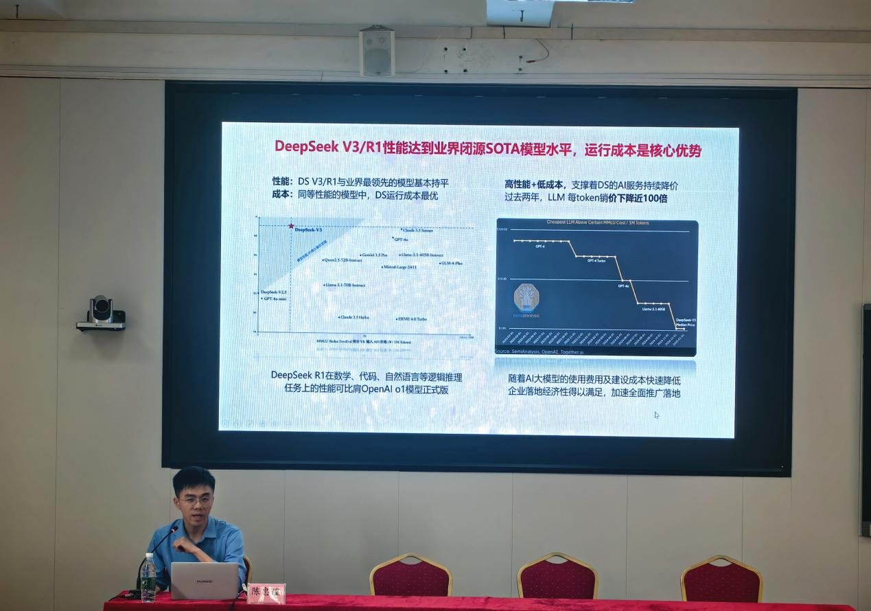 为进一步提升学校教职工运用AI人工智能大模型分析解决问题的能力,4月16日下午,人事处联合信息与网络中心组织开展专题培训讲座,学校战略合作单位福州联通邀请人工智能IT产品专家陈忠煌担任主讲嘉宾。各部门、学院负责人及相关教师参加培训,讲座由信息与网络中心周培根主持。