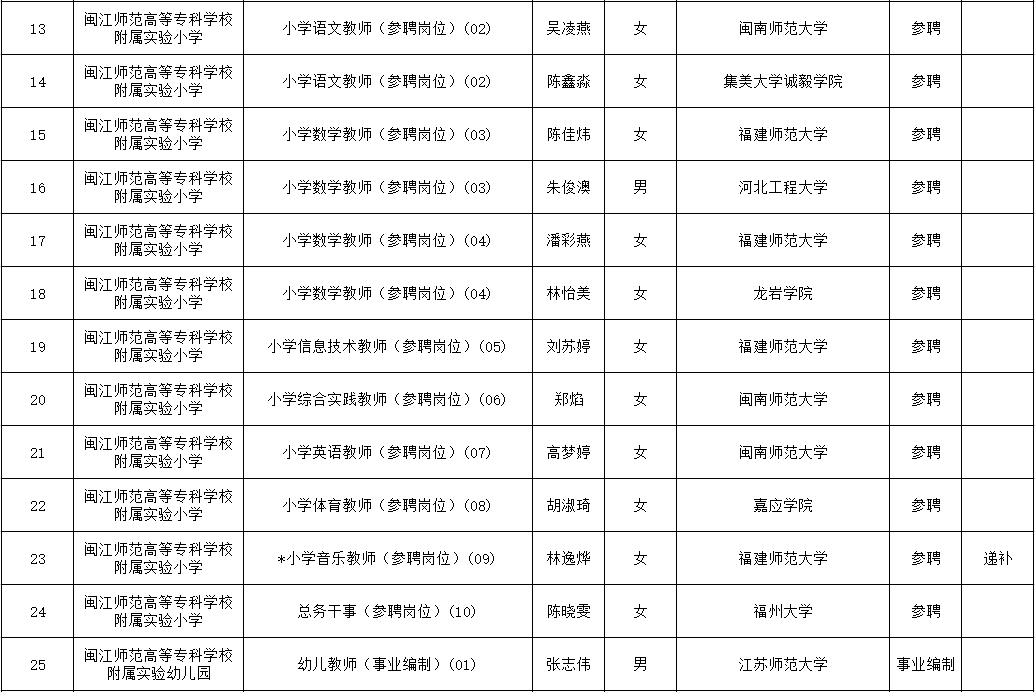 备注:部分岗位存在递补人员等特殊情况,待体检考核合格后另行公示。