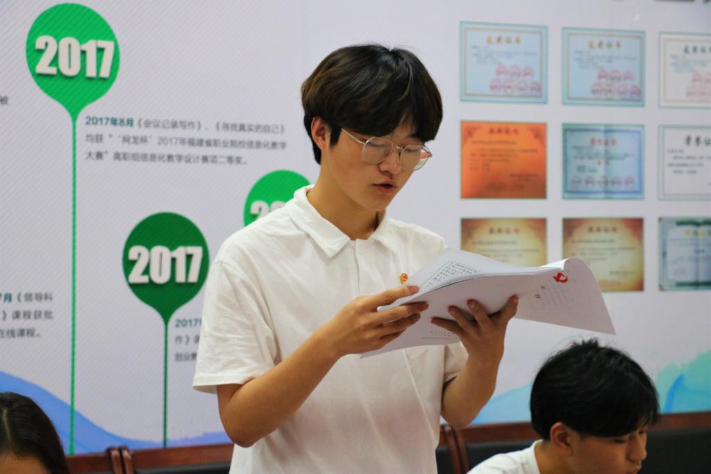 6月15日,人文社科系学生党支部在仓山校区3号楼会议室召开接收预备党员大会。本次会议由支部书记叶懿蛟同志主持,校党委委员、副校长林旻同志到会指导,系党总支书记洪书源同志、校党委工作部郭剑恩同志列席会议。
