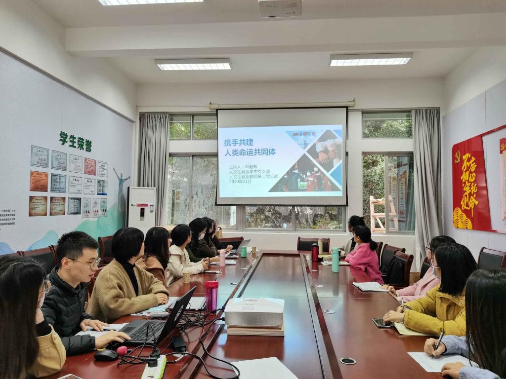 为进一步加强党支部建设,提升支部书记履职能力,不断提高党员思想水平和政治觉悟,11月25日,学生党支部书记叶懿蛟同志以“携手共建人类命运共同体”为主题,给学生党支部与教师第二党支部党员上党课。