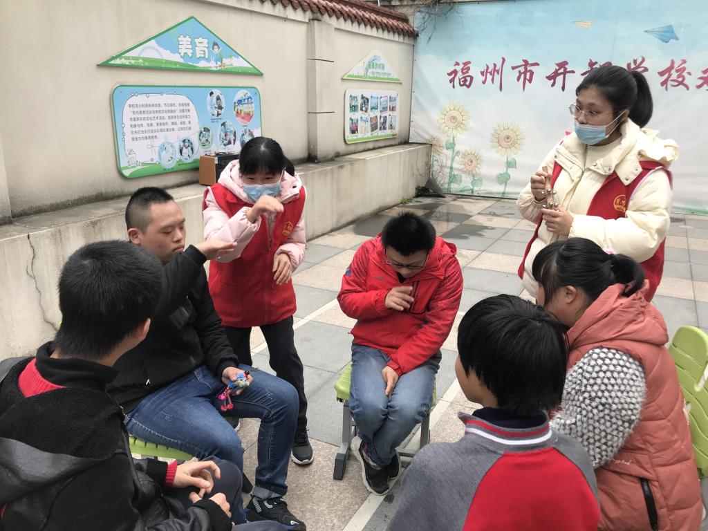 活动开始,志愿者们准备了蛋糕为福州开智学校的孩子们庆祝生日,齐唱生日歌,每个孩子都能品尝到美味的生日蛋糕。随后,志愿精心设计了“滚滚而来”、“一锤定音”、“好运相传”等游戏,孩子们在老师的引导下,积极参与了游戏,在游戏过程中给孩子们奖励了可爱的小礼物。游戏中的欢乐,让孩子们露出了开心的笑脸,孩子们也与志愿者们建立了真挚的感情,主动与志愿者玩耍。