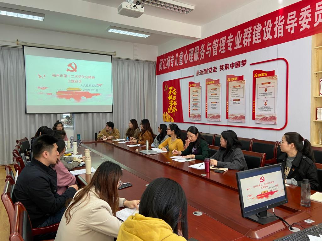 11月10日下午,人文社科系党总支所属各支部于仓山校区三楼会议室开展福州市第十二次党代会精神主题宣讲学习。本次学习由各支部书记分别主持,各支部教师党员参加。