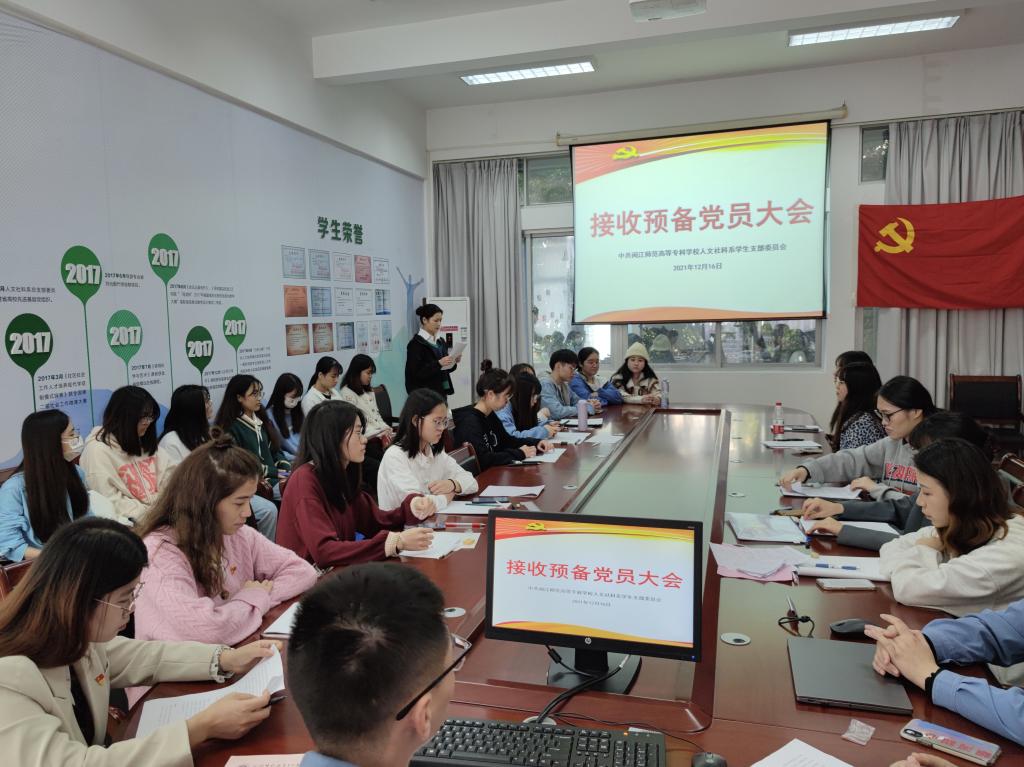 人文社科系学生党支部于2021年12月16日在仓山校区3号楼会议室召开接收预备党员大会。本次会议由支部书记叶懿蛟同志主持。