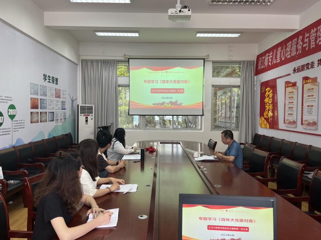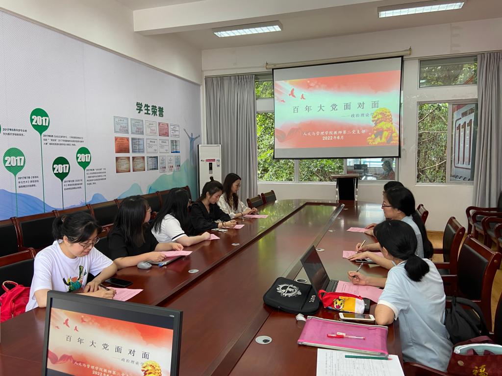 2022年6月22日下午,人文与管理学院党总支所属各支部于仓山校区开展政治理论专题学习。本次学习的内容为:专题学习《百年大党面对面》。本次学习由各支部书记分别主持,各支部教师党员参加。