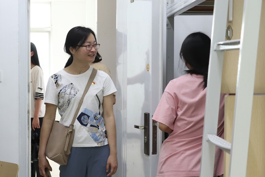 在搬迁工作现场,学院领导现场统筹,并协助搬运。在学院领导的组织下各志愿者分队分工明确、秩序井然。“点对点”的行李搬运工作完毕后,教师志愿者们走访宿舍、慰问学生,听取学生反馈的困难和需求,并帮助学生寻求解决方案。