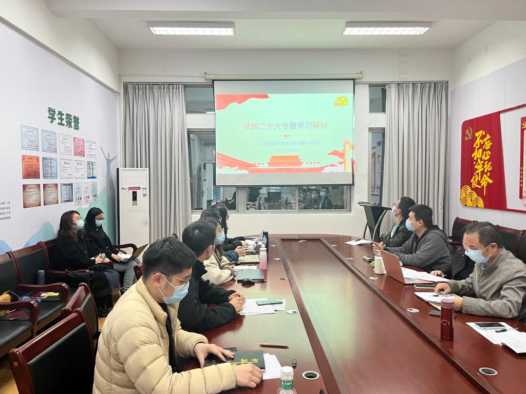 2022年12月7日下午,人文与管理学院党总支所属各支部于仓山校区开展政治理论专题学习。本次学习的内容为党的二十大专题学习研讨:辅导书目《二十大党章修正案学习问答》、《中国共产党第二十次全国代表大会文件汇编》等学习材料。本次学习由各支部书记分别主持,各支部教师党员参加。