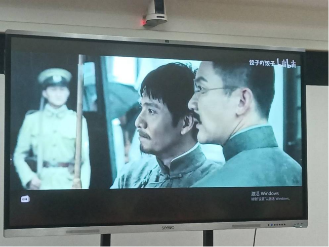 图1:现场播放五四爱国影片《1921》