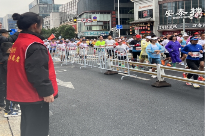 本次活动的服务地点主要集中在“健康跑”的起跑路段,志愿者们在赛事期间密切配合,精准把握各项事宜,高质量完成交通疏导、路面垃圾清理等任务,帮助市民及时了解赛事路线并合理安排出行路线,全力保障赛道秩序。在完成赛事相关服务的同时,志愿者们不忘为参赛者呐喊助威,以饱满的热情和负责的态度为马拉松选手提供暖心周到的服务。