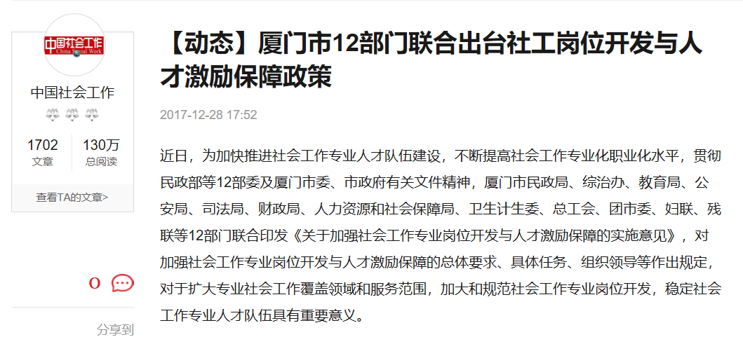 福州、厦门和泉州各地均有出台对于社会工作人才的激励政策,薪酬福利大幅提高,做社工是一份体面的工作!