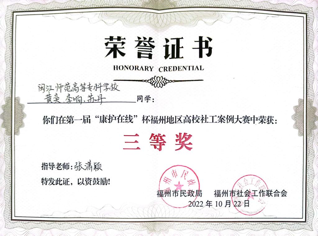 任职机构:先后于厦门市湖里街道、厦门市金秋养老有限公司、三明市民政局养老科、三明市社会福利院、三明市扬帆青少年社会工作服务中心,以专业知识践行兜底民生服务;