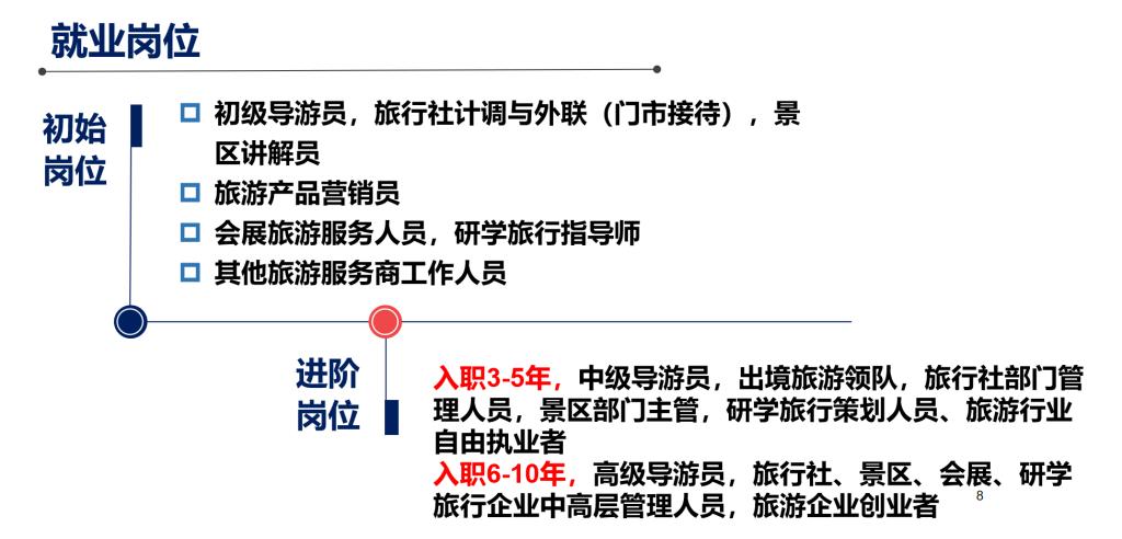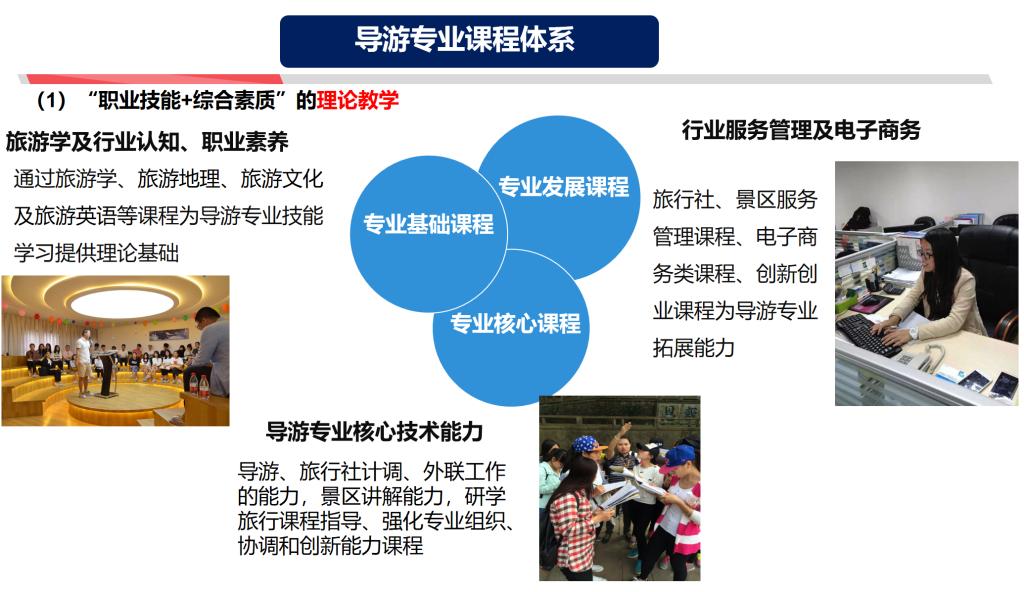 导游专业的课程包含专业基础课程、专业核心课程和专业发展课程。课程设置由浅入深,充分适应学生的认知发展过程。