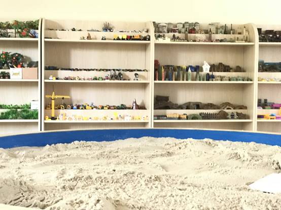 主要设备:玩具模型、玩具陈列架、标准沙箱、标准沙箱桌、团体箱庭、沙发、茶几