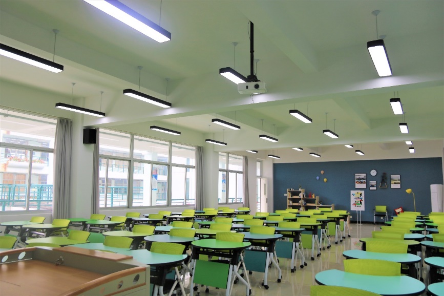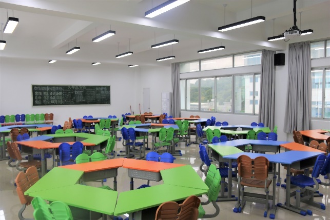这是开展协作学习/分组教学的圆桌教室,方便同学们进行小组交流互动。