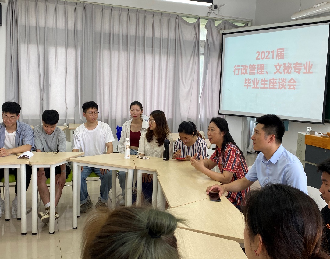 同日下午14:40分,大赢家体育app下载人文社科系行政管理、文秘专业2021届毕业生代表座谈会在仓山校区3号楼501教室召开。系副主任陈勤老师、行政管理教研室主任杨宁老师出席会议,行政管理专业袁曦老师、文秘专业吴姗姗老师及20多名毕业生代表参与会议。