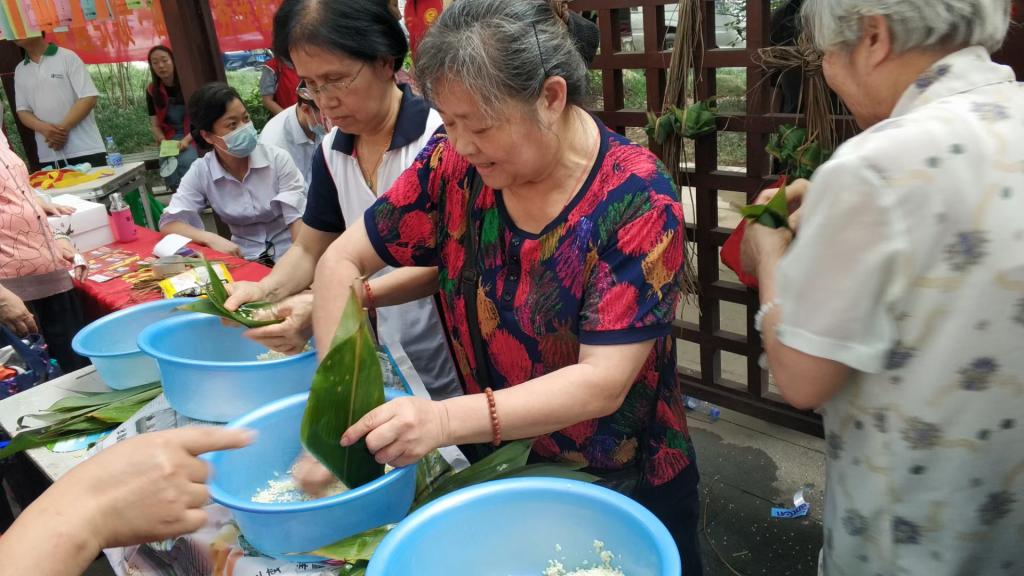 为弘扬中华民族文化,传承中华传统习俗,更好地推进近邻党建工作,提升辖区居民的幸福感,增进社区与居民之间的感情,增加社聚力,6月10日,大赢家体育app下载社会工作专业的的同学来到陆庄社区,协助鼓楼区鼓西街道举办的“红色百年粽叶香,邻里共建一家亲”端午节活动。