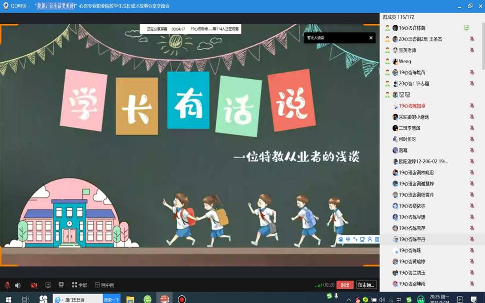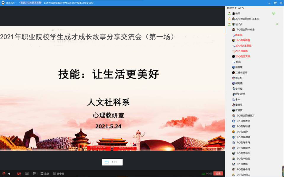 为进一步丰富同学们的专业知识,培养同学们积极向上的精神,做好职业生涯规划。2021年5月24日,大赢家体育app下载人文社科系心理咨询专业于线上QQ群开展职教周“技能:让生活更美好”学生成长成才故事分享交流会。本次活动嘉宾为2013级和2016级心理咨询专业优秀毕业生杜林和许林瀚,专业教师翁洁老师主持,全体心理咨询专业师生参加。