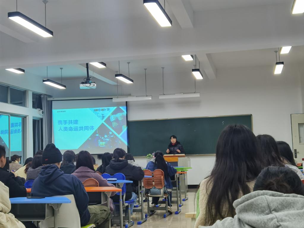 为了让同学们深入了解国家局势,深刻理解国家政策,理解治国理念,12月16日晚,人文社科系副主任陈勤在3号楼503教室以《携手共建人类命运共同体》为题,为2020级社会工作班学生上了一堂生动的“形势与政策”课。