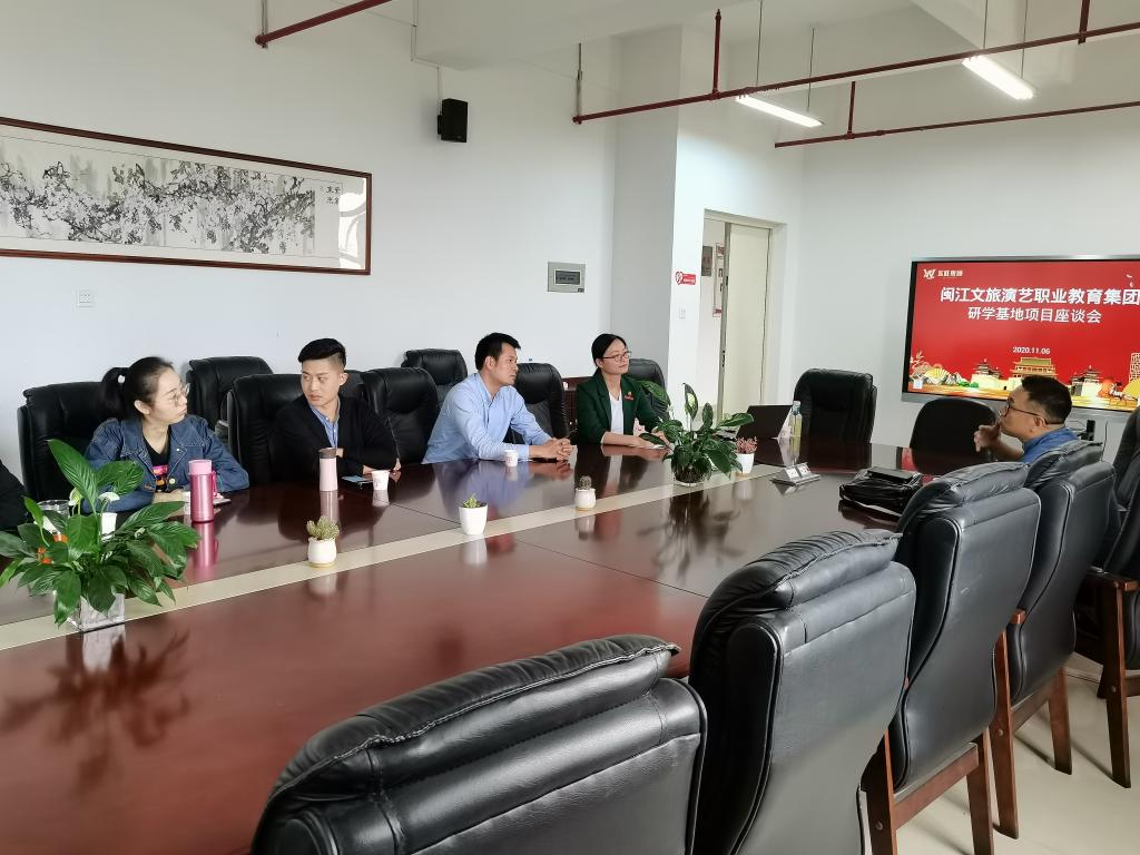 为加快闽江文旅演艺职业教育集团研学基地项目快速发展,增强学校研学旅行团队力量建设。2020年11月6日下午,学校特邀龙旺集团教育产业中心总监、闽江文旅演艺职业教育集团负责人李梁裔,会同福建省小学教育公共实训基地负责人张航主任、人文社科系副主任刘少艾、导游教研室主任谢颖以及艺术系闽剧表演专业教师在旗山校区开展研学基地项目座谈。