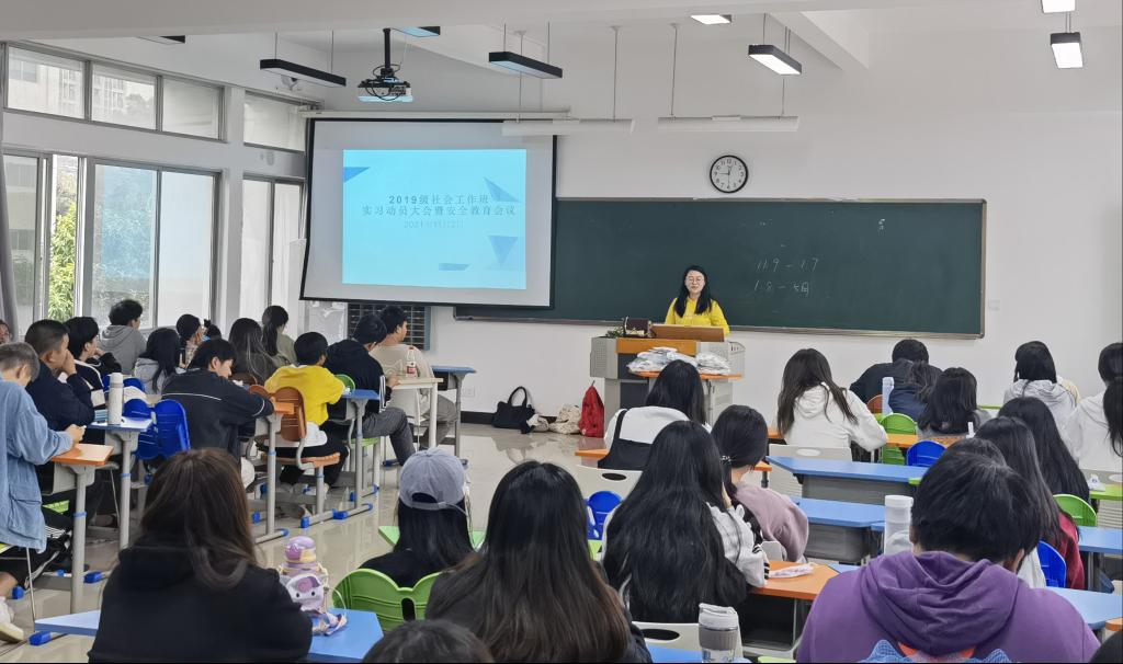 为确保实习工作顺利开展,保障2022届毕业生实习工作的顺利开展和完成,提升同学们的安全意识,引导学生做好实习前的各项准备,11月8日上午,我系社会工作专业召开“实习动员大会暨实习安全教育会”。会议由19社工班班导师张潇颖主持,参加会议的是2022届19级社会工作毕业班全体学生。