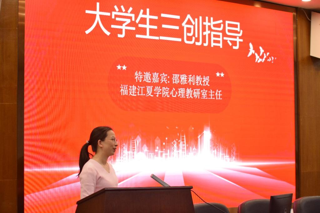3月16日下午,人文与管理学院于仓山校区图书馆多功能报告厅开展三创主题讲座活动。我们有幸邀请到福建省心理学会监事长,福建江夏学院心理教研室主任并拥有丰富的创新创业大赛指导经验的邵雅利教授为同学们进行系统培训。翁洁老师主持了本次活动,20、21级心理咨询专业全体学生参加学习。当天的线下讲座,通过我院融媒体中心同步开设腾讯会议全程直播,全院师生都能通过在线学习渠道实现学习资源共享,观看流量高达512人次。