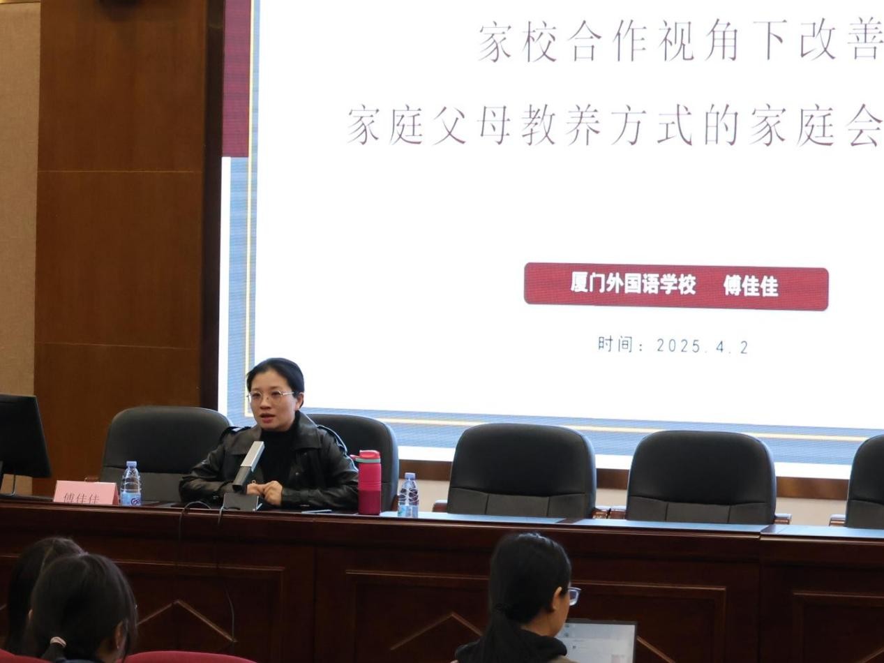 图二:傅佳佳老师分享“家校合作视角下的家庭会议实践”