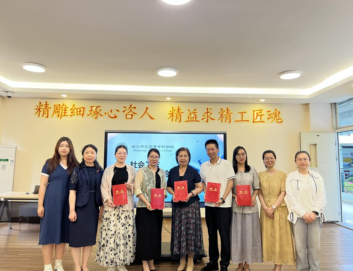 为进一步推动社会工作专业的发展,提升社会工作专业水平和社会影响力,2025年6月5号下午,人文与管理学院在仓山校区三号楼206教室举行人文与管理学院社会工作专业建设委员会会议。福建省社会工作联合会徐若兰副教授、闽江学院刘宜君副教授、福建省致和社会组织孵化与创新中心项灯辉高级社工师、福州市一心社会工作服务中心黄晓玲高级社工师以及福州市晋安区紫阳社区陈秀琴书记,人文与管理学院陈勤院长、社会工作专教研室主任余晶、社会工作专业教师张潇颖、何昕柔共9位代表出席,会议由余晶老师主持。