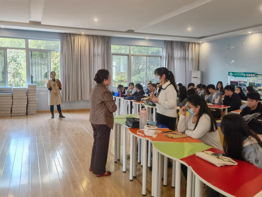 图1.徐若兰主任为同学们讲解社会工作的由来