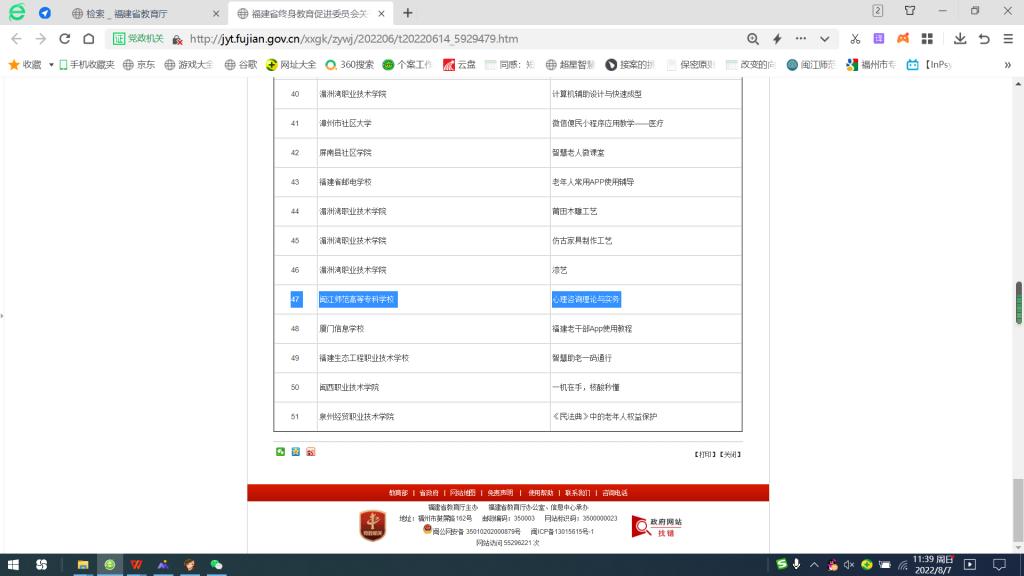 附:福建省终身教育促进委员会关于推介第二批省级“智慧助老”优质工作案例、教育培训项目及课程资源的通知:http://jyt.fujian.gov.cn/xxgk/zywj/202206/t20220614_5929479.htm