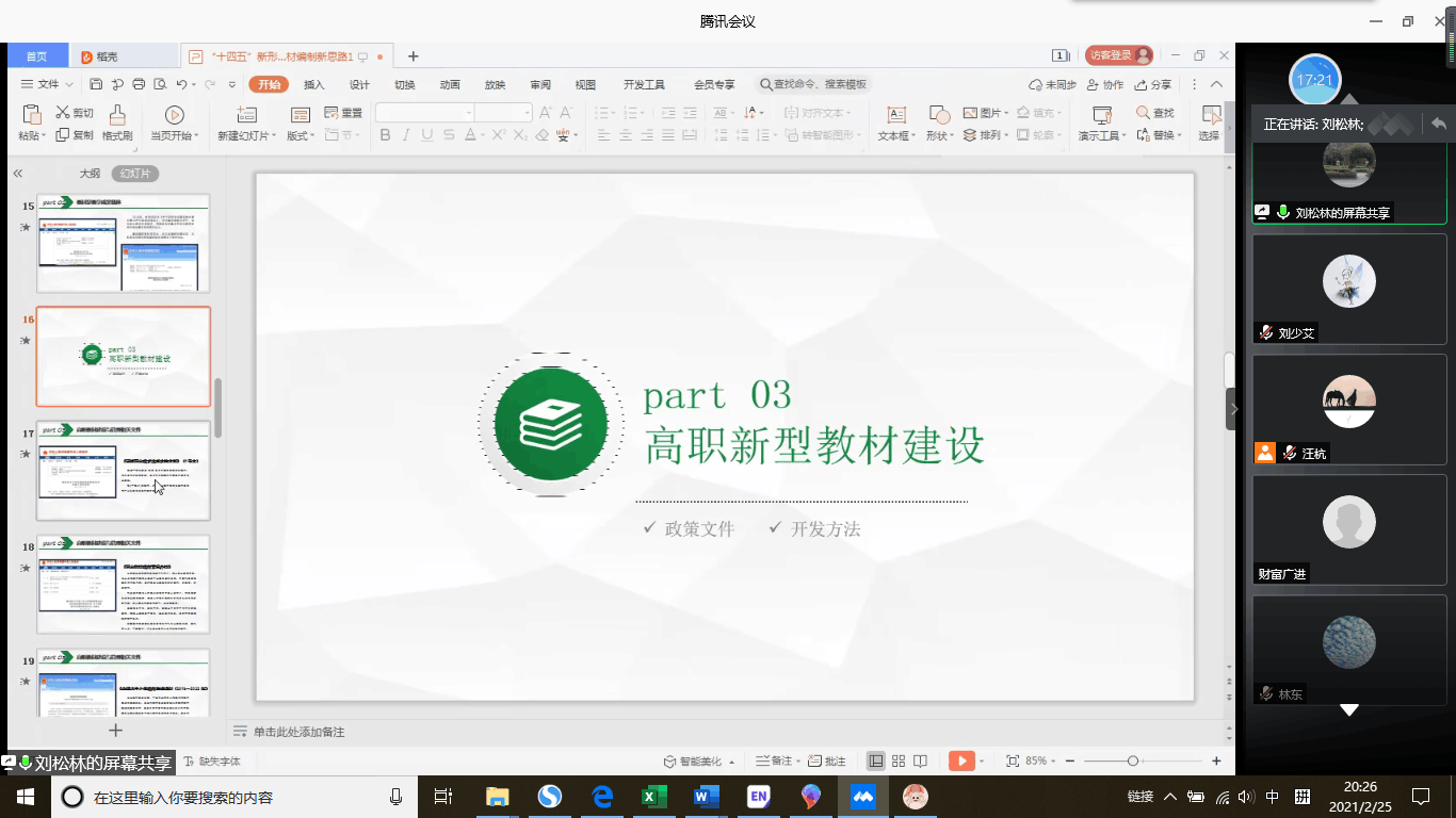 2021年2月25日,人文社科系系副主任刘少艾、导游教研室负责人谢颖及导游教研室全体教师以线上会议的形式参加福建省旅游职业教育“十四五”规划教材编写启动会暨首场审纲会。参加此次会议的有专家顾问郑耀星教授、旅游职业教育行业指导委员会刘松林教授、华中科技大学出版社旅游分社李欢社长及福建省高职中职院校旅游类专业负责人及骨干教师。