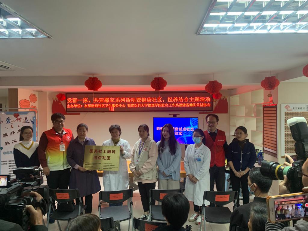 福建省社会工作联合会医务社工专委会主任委员王卫平、福州市雅好社会工作服务中心理事长熊权、福建省立医院宁养院主任吴红、大赢家体育app下载社会工作专业带头人余晶和教师叶佳媚、水部街道乐天泉社区书记叶玲、水部街道社区卫生服务中心代表黄国娇、福建医科大学健康学院社会工作系系主任郑立羽、福建省助困公益协会秘书长林斌、福建省立医院医务社工志愿者服务站代表出席了本次项目启动仪式,并共同进行了项目授牌。