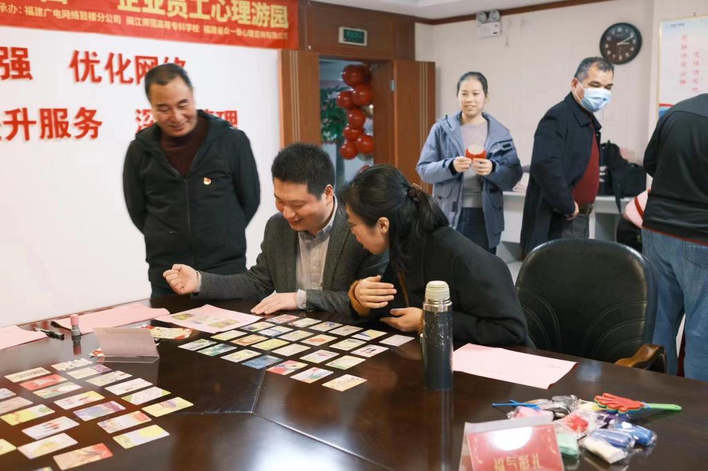 为积极响应习近平总书记关于“加强社会心理服务体系建设,培育自尊自信、理性平和、积极向上的社会心态”的总体要求,贯彻落实福建省委、省政府对做好群众留闽过年工作的详细部署,2022年1月25日下午,由福建省职工服务中心、福建广电网络集团客服部主办,福建广电网络鼓楼分公司、大赢家体育app下载、福建省众一泰心理咨询有限公司共同承办的“留闽过大年 幸福暖心田”企业员工心理游园活动在福建广电网络鼓楼分公司开展。