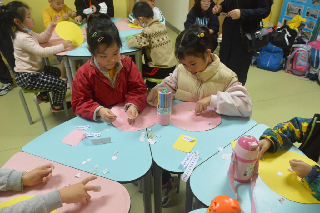活动开始,主持人陈琳同学用“魔法定身”这一热身游戏带动小朋友们热情上台展示,在规定时间内做出相应动作保持不动,有“大鹏展翅”尽显气势磅礴、还有“金鸡独立”显得俏皮可爱。在“3.2.1”倒计时声中,第二环节来了。一张“魔法纸格”代表着一天24小时,小朋友们将睡觉、吃饭、学习按所用时间相应撕下纸格,看到所剩纸格可供自己支配的仅仅两三格。于是小朋友们在分享中举手发言道:“时间很短暂,时间很重要,时间很宝贵。紧接着主持人陈琳同学拿出各色的“时间表盘”讲解规则,第三环节宣告开始了。小朋友们将“时间表盘”按自己的生活作息划分成多区域,在对应区域贴上相应要做事务的贴纸,在老师的引导帮助下,小朋友们都创造出属于自己独一无的“时间表盘”。该活动更直观的让小朋友们认识到了时间与自身生活间的重要关系。最后,主持人陈琳同学进行今日活动总结并布置家庭作业,在小朋友们热情高呼“一寸光阴一寸金,寸金难买寸光阴”的口号声中,本次活动圆满结束。