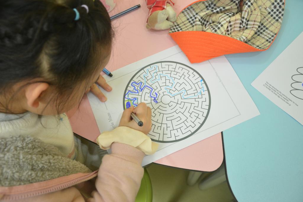 首先,主持人李文静同学用专属动作转圈圈代表自己,小朋友们纷纷以自己的专属动作回应老师,踊跃上台展示。“魔法暗号”这一热身游戏带动了全场的氛围,开启了本次活动的序幕。紧接着,进入主题游戏一“魔法密钥”,各小组在“井”字盘内摆放、移动彩色棋子使其连成一条直线,用时最短者胜。该活动,体现了小朋友的限时反应速度和思考能力。然后,主题游戏二“魔法迷宫”也有条不紊地进行着,小朋友们依次完成老师的分发的一易一难迷宫图,在此活动中小朋友们敢于独立思考,遇到困难时也勇于寻求伙伴、老师共同合作思考,巧妙化解难题。最后,小朋友们依次发言在活动中的感想与收获,主持人回顾往期活动,总结小朋友们的成长与进步,并对小朋友们寄予美好的祝福与殷切的希望。至此,本系列活动圆满结束。