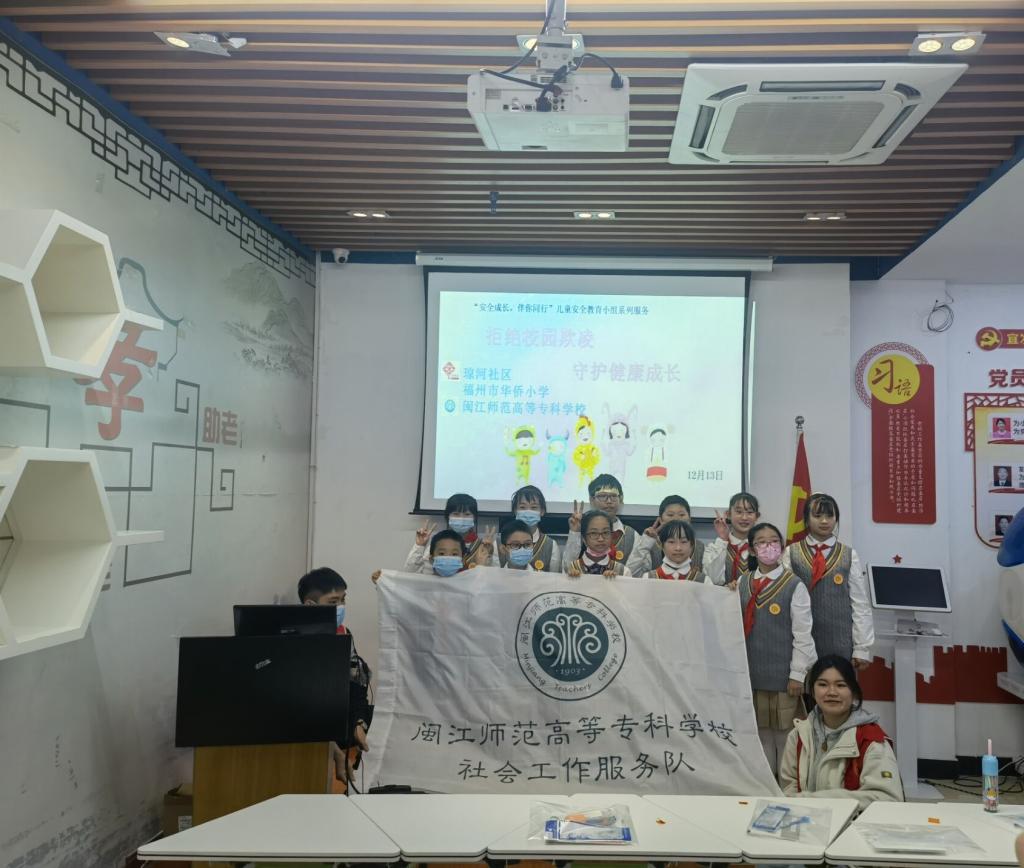 校园欺凌可使大家的身心健康受到伤害。校园欺凌不仅直接伤害了我们的身体,还会严重损害我们的心理健康,有些同学由此产生恐惧心理,难以集中精力学习,造成学习成绩下降,有的甚至不能正常完成学业,为了预防和减少校园欺凌事件的发生,提高学生的安全意识和自我保护能力,共同维护和谐的校园环境。大赢家体育app下载人文社科系20级社会工作班学生联合福州鼓楼区琼河社区、福州华侨小学为琼河社区辖区内儿童开展“安全成长,快乐相伴”儿童安全教育小组工作系列活动。