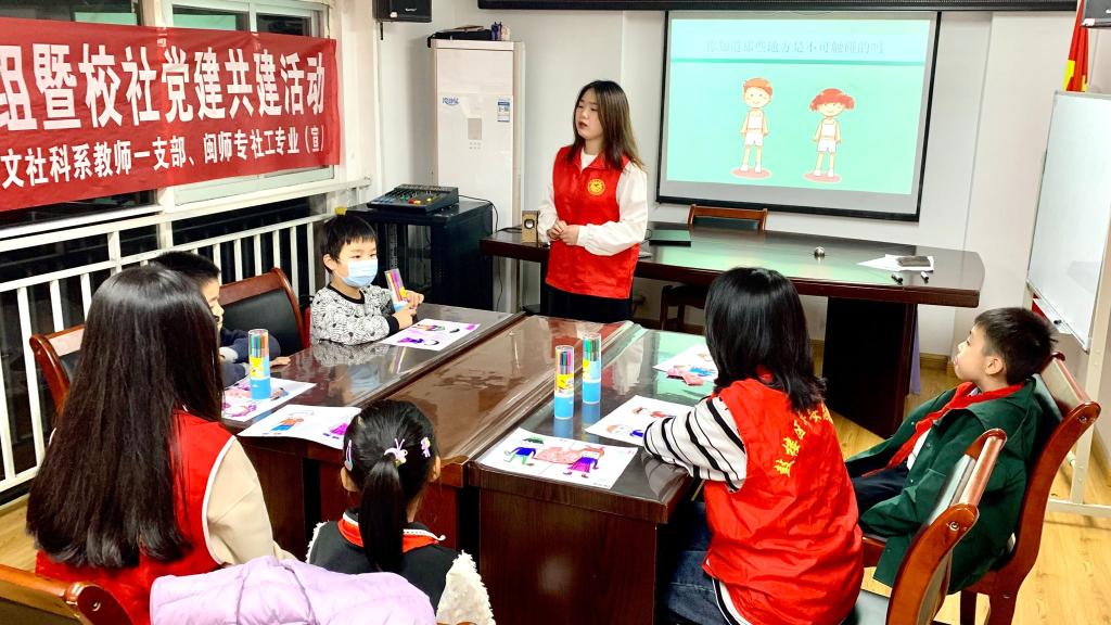 本次活动主题为青春健康教育进社区,于12月16日下午开展,本次活动意义在于帮助儿童进行性启蒙,认识基本人体知识,提高儿童自我防护意识,减少侵害事件发生的概率。活动一共分为六个环节。第一个环节为热身小游戏“抓住他”此环节调动了儿童对于活动的积极性,活跃气氛,让儿童之间互相更加亲近彼此;第二个环节为“给图画上的小朋友穿衣服”,通过给图画上的小朋友画上衣服,让儿童初步了解男女童的隐私部位;第三环节为“想一想”,让小朋友们正确认识文明与不文明身体接触的区别,让儿童拥有相应防护意识;第四环节为“你知道吗”让小朋友们真正了解不能触碰的部位;第五环节为“如何摆脱危险”,让小朋友们了解当在遇到危险时如何摆脱;最后一个环节为播放关于安全教育的动画视频,巩固今天所普及内容。活动结束后,社会工作的同学与小朋友们进行合影留念,并给小朋友们送上精美礼物,邀请他们下次再参加活动,为下次“乐教乐学,共伴成长”系列活动举办进行衔接。