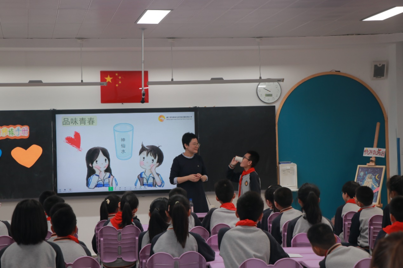 活动中,学员们观摩了小学心理健康教育专业周丽老师主讲的“青春修炼手册”心理健康课。在互动交流中,周丽老师首先通过品尝“神仙水”,引导同学们了解“青春”的概念,以循序渐进的方式让同学们理解“爱情”。在课堂上,周丽老师通过小组辩论的形式,充分发挥同学们的语言能力,积极鼓励同学们发表自己的观点,最后结合视频的直观演绎,让同学们了解同学间相处的合适距离。课后,周丽老师向2022级心理健康教育专业的学员们分享了本次公开课的授课心得,并针对学员们的提问进行答疑。