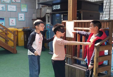 本次活动以第一期收集到的“自然能量”为基础,开启“威廉古堡”探险之旅。首先,通过带领小朋友们回顾与强化上期心理辅导活动的收获。热身活动中通过拍掌动作匹配语言指令的多轮互动游戏,训练小学生注意力并提高小组成员之间的配合性。接着,通过“盲人拐杖”环环相扣的活动设置,让小组成员内一对一模拟“盲人”及“拐杖”共同闯过重重关卡,强化小组内成员之间的信任与默契。然后,通过“地雷阵”让小组内自由讨论与分配任务,通过场外援助的设置让孩子们认识到小组内每个人的表现都是团体获胜的关键,只有在小组内取长补短,优化短板才能使团体获得最大的利益。最终,小组成员们在分享中都认识到团队合作的重要性,领悟到自己需要积极参与团队沟通与合作,投入与奉献自己的力量,才能让每个人都在团体中获益。