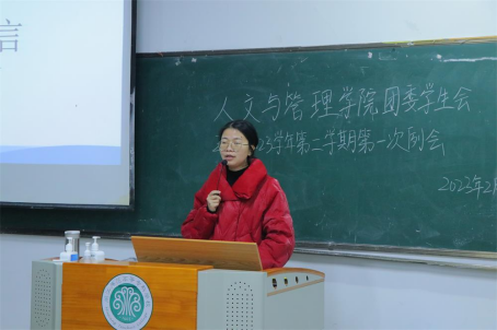 为进一步理清新学期我院团委学生会的工作思路,确保我院团委学生会的工作平稳、有序、高效地进行。2月14日,人文与管理学院团委学生会于仓山校区3-104教室召开2022-2023第二学期第一次例会,福清校区的两委成员通过观看线上直播的方式参与本次会议。本次会议由办公室干事唐佳慧主持,出席本次例会的老师有院团委书记黄益群、自律会指导老师叶懿蛟。院团委学生会全体成员共同参与。