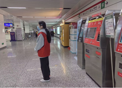 图2:地铁站志愿者在售票机旁为群众提供帮助