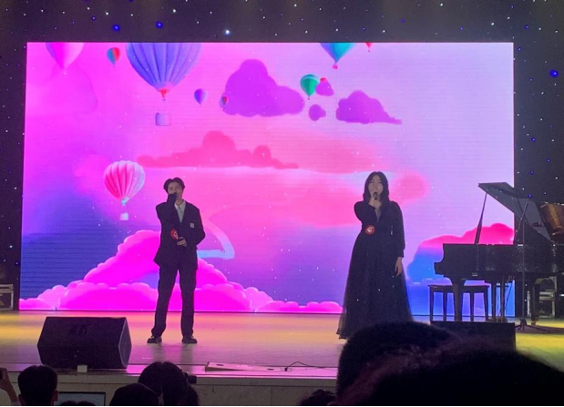 图1:21行政管理1班邹叶芝、21导游1班王诗萍同学倾情演唱