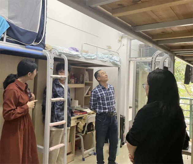 林朝阳书记与学生深入沟通,询问同学们在生活和学习方面是否存在困难,表示有任何问题,要及时寻求学院的帮助。走访宿舍期间,林书记特别提醒大家要注意宿舍的消防安全、用电安全、人身安全和财产安全,提高防范电信诈骗的意识。此外,林朝阳书记还鼓励同学们走出宿舍,进行户外活动和体育锻炼,增强体质,促进身心健康。辅导员则重点对宿舍的卫生状况和用电安全进行了督导,提醒同学们要按照学校宿舍管理规定规范使用电器,宿舍要勤通风、勤打扫,做到无异味、整洁干净。